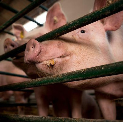 Modern pig production units are not a happy place for the pigs, let’s be very clear. Then they’re slaughtered in the prime of their lives often in terrifying circumstances as their friends perceive, often observing the impending fate.
